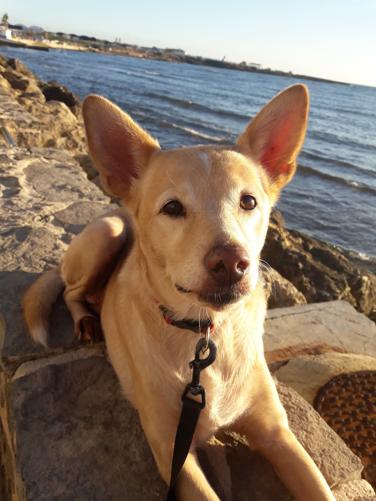 My Dad (his name is Dano) isn't the greatest about taking me for walks. BUT, since we moved to Espana (Spane) he takes me along when he goes to the gro...guroh....grosuree store. He also did some research because he heard dogs can ride on the busses and some beaches allow dogs. Woohoo!! He discovered there are 7 bus routes that allow me to ride! They require I wear a nozzle on my nose and I am on a leash and he must pay 30 cents for me. He also red there are 9 legal doggie parks in Palma!